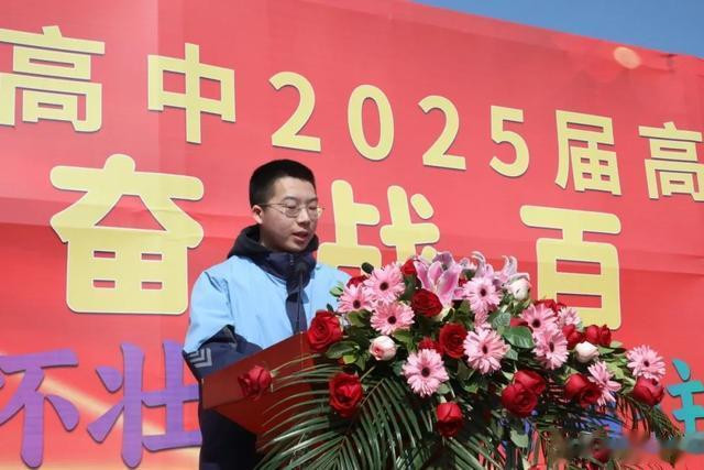敢许少年凌云志,只争人间第一流。宋建树同学代表全体高三学子表态:在这最后的冲刺阶段,我们将以计划为盾,细化每日目标,让碎片时间发挥最大价值;我们将以专注为剑,摒弃杂念,把每一次练习当作实战;我们将以互助为舟,与同窗并肩,用讨论碰撞思维的火花;我们将以心态为帆,用微笑迎接挑战,在挫折中磨砺韧性。