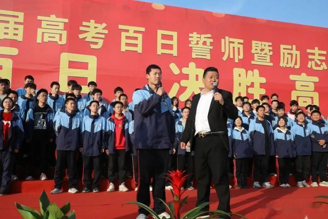 乘风破浪跨沧海,并肩携手跃龙门。教师代表胡华老师说:同学们,在这最后的一百天里,全体教师将与你们并肩作战,风雨同舟。我们愿以渊博的知识为笔,为你们答疑解惑;以耐心和爱心为墨,为你们排忧解难。我们愿做你们最坚实的后盾,最温暖的港湾,陪伴你们度过这紧张而又意义非凡的一百天。