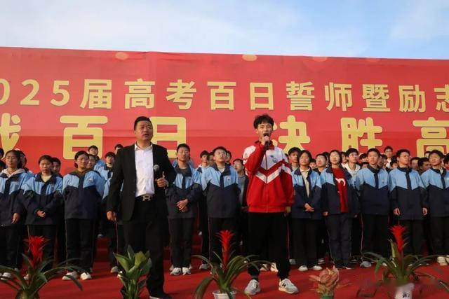 春风浩荡战鼓擂,壮志凌云谱新篇。会上,朱校长语重心长地向同学们嘱托了三点:一、回望来时路,初心如磐铸底气;二、聚焦百日行,科学精进创奇迹;三、共赴青云志,勠力同心赢未来。最后,他代表学校向全体高三学生郑重承诺:全体教师将化身“智慧导航”,为你们精准把脉、倾囊相授;校园资源将全线护航,从心理辅导到营养膳食,为你们筑牢最强后盾!